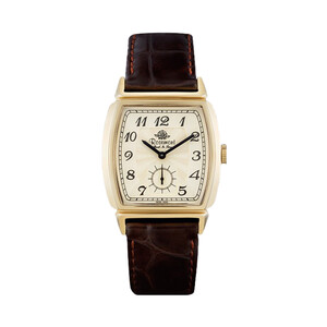 表盘采用酒桶型造型设计,经典不失复古,打造出儒雅大气格调。运用深咖啡色衬托,显得时髦摩登,佩戴起来更显绅士风度。
