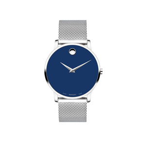 蓝色的表盘设计,时尚又耐看,银色的双针式,更显简约大气,结合米兰钢制表带,优雅耐看。