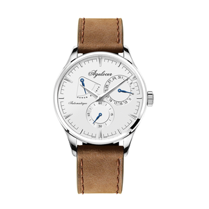 采用自动机械机芯的瑞表款式,做工精细,细节考究,更加耐用持久,结合牛皮的表带,柔韧贴合手腕。