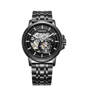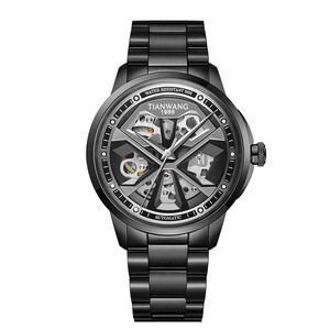 依波潮流炫黑全镂空男士钟表