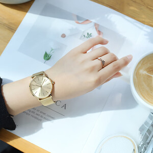28mm的表盘,视觉上显得格外的大方圆润。搭配白色的表盘,清新感十足。编织感的金带,上手贵气十足。
