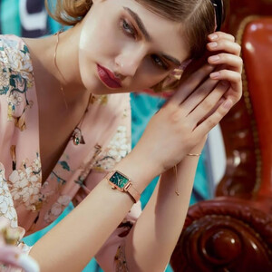 采用进口石英机芯,性能稳定。深绿色打造的方形表盘,彰显出女士的魅力。