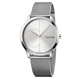 银色CK标志和两针设计,简约中又不失大气,可折叠的米兰编制钢带,贴合手腕,佩戴起来非常舒适,密封的表底,很有设计美感。