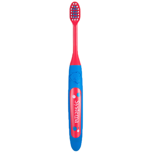 狮王护齿儿童牙刷采用柔软的刷头,有效保护孩子稚嫩的口腔;采用红蓝配色,色彩鲜艳。