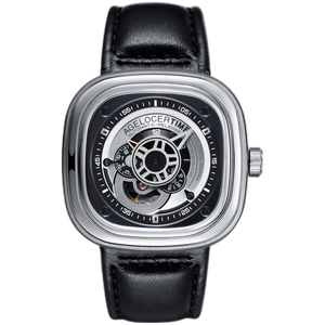 纤薄表盘搭配细长剑形指针,突出极简风格,商务男士佩戴贴合身份。背面全景展示,机芯走动一目了然,带给人与众不同时尚感。 上榜理由: