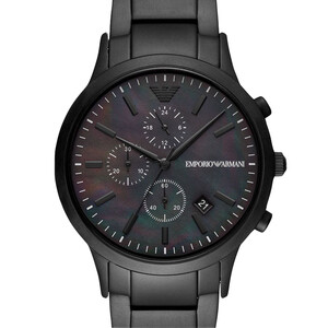 哑光酷黑表冠,镌刻阿玛尼鹰型LOGO,尽显匠心工艺。质感钢质表带,闪耀悦目光泽,体现你的时尚雅致。