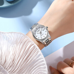 表圈镶嵌璀璨锆钻,散发细腻动人的光泽,出席晚宴佩戴能提升个人魅力。指针和刻度融入夜光元素,深夜也可欣赏时光流动。 推荐商品