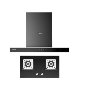 油烟机采用特氟龙风轮,不易沾油污,时刻保持畅顺运转。燃气灶采用台嵌两用设计,简约玻璃面板清洁更方便。