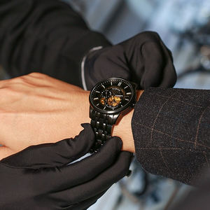 汲取星际灵感而设计的男士腕表,表盘如星轨运转,搭配镂空设计,内里乾坤一览无余,玩转腕上新潮流。黑金撞色,视觉效果MAX。 上榜理由: