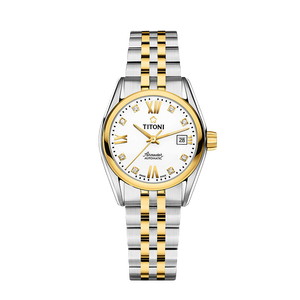 蓝宝石镜面坚硬透亮,米兰钢带设计细腻光滑,简约圆形表盘。