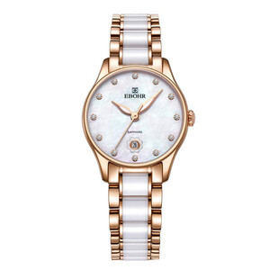 虹彩母贝表盘,闪耀字钉镶嵌,释放优雅魅力。玫瑰金不锈钢表壳与间陶瓷玫瑰金不锈钢表带相得益彰。开窗日历弥漫着严谨气息。 上榜理由: