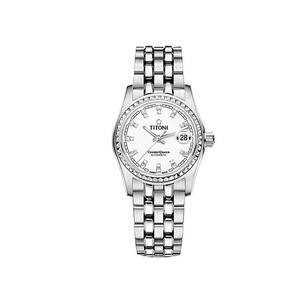 多颗镶钻点缀,光泽璀璨闪亮,散发着轻奢雅致的韵味。3点钟位置增设日历窗口,简洁耐看,读时方便。