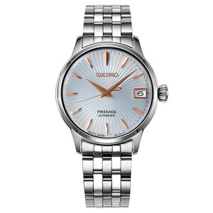 不锈钢材质表带,触感温润细腻,为腕部带来舒适体验。玫瑰金条形刻度和指针,与银色基调对比鲜明,时间读取清晰又直观。 上榜理由: