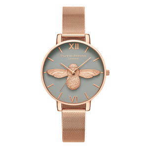 米兰编织钢带设计,贴合手腕弧度,佩戴舒适。精巧3D立体蜜蜂表盘,独特美观,增添时髦气息。