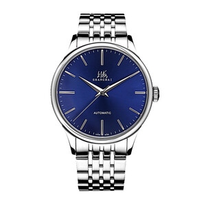 64年工艺传承,精益求精是上海牌的制表理念,剑型指针,银色蓝盘张显精英气质,精钢表带长期佩戴亮泽如新。