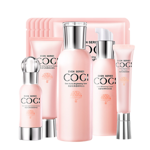 内含水、乳、精华液、日霜和清润晚霜,一套满足日常护肤需求,让肌肤时刻保持水嫩。添加珍珠成分,能提亮肤色,减少发黄烦恼。