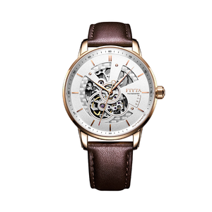 采用棕色牛皮表带,纹理细腻自然,柔韧亲肤,透气十足。搭配多层次镂空设计,款式潮流时尚,且带有别样的机械美感。 上榜理由: