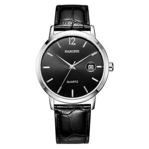 腕间风采一表彰显,进口石英机芯,316L精钢表壳,矿物质强化玻璃表镜,黑面银钉表盘,小牛皮表带,独立自由,洒脱豁达。