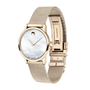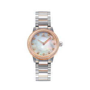 白色珍珠贝母盘面设计,简约时尚,散发天然焕彩,映衬白皙肌肤,展现空灵温雅气质,镀金钢表壳,细致抛光,亮眼夺目。 上榜理由: