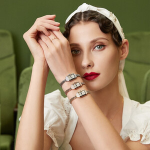 小巧玲珑的方形表,适合女性纤细的手腕,不显累赘厚重,衬托女性的优雅与娇美。排镶璀璨锆钻,绽放迷人光芒,更添魅力。