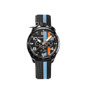 从赛车元素中汲取灵感,蓝橙交织的个性配色,时尚鲜明,尽显年轻风采。穿孔的硅胶表带,透气舒适不易变形。