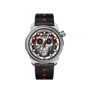 选用全自动机械机芯,赋予了它强劲的性能以及较小的误差,走时准确。多层次的骷颅表盘设计,新颖别致,个性十足。