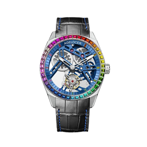正面板桥的飞行陀飞轮结构,搭载双面镂空设计,将机械表的动感之美展现的淋漓尽致,颇受人们喜爱。