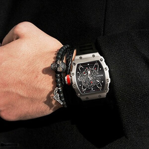 表盘透明镂空的设计,可以看到内部机械的完整运转,感受机械带来的魅力。碳纤维的材料制作,带来更强硬度的同时质量轻巧。 上榜理由: