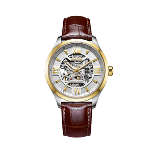 采用立体感镂空表盘设计,展现机芯运作美感,复古不失前卫气息。金色的表圈设计,光滑油亮,演绎大气风尚。