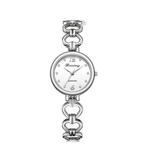 心形手链款式的腕带,清新优雅,银白的配色,圆形的小表盘,简约大气。