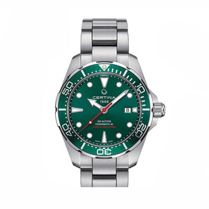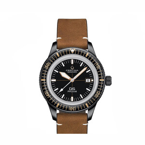 黑色太阳修饰表盘,搭配镀银抛光指针,双折式安全表带,带潜水眼神装置,海洋运动爱好者的腕间选择。