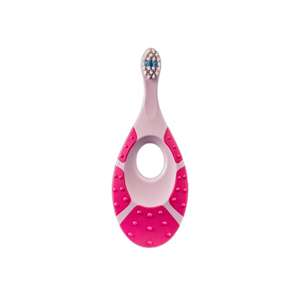 针对0-8个月宝宝的启蒙牙刷,带有安全挡板,避免入喉伤到口腔。柔韧刷毛配合精巧刷头。轻柔按摩宝宝乳牙及牙龈。 上榜理由:
