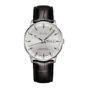 银白色的精钢表身,搭配白色哑光表盘,体现纯净雅致的现代格调,内置自动上链机械机芯,动能储备达到64小时。 上榜理由: