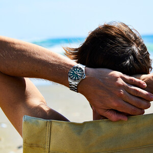 东方双狮的这款日韩表,表圈设计有60个凹槽,逆时针旋转表圈,能让潜水员在水下计算潜水时间。