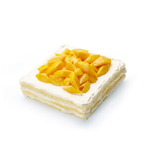 松软蛋糕层之上裹着一层浓郁丝滑的奶油,再搭配新鲜成熟的芒果,口感酸甜清新。