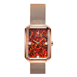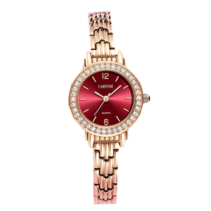 表盘融入红色暗纹元素,光照变化细微色泽,凸显复古气息,佩戴手腕提升温婉知性美。表链采用小巧样式设计,上手简约又大气。