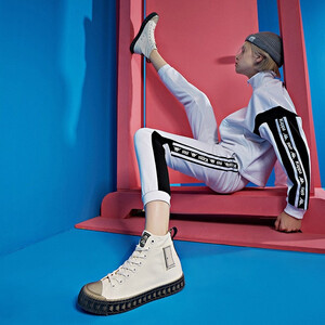 高质感棉质面料,纹理清晰,具有张力舒适性好,透明水晶鞋底围内嵌品牌串标,颇具街头风格,整体极具潮流个性。 上榜理由: