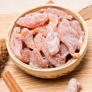 精心挑选的饱满蜜桃,呈现出红润粉嫩的色泽,经过晾晒后,完成华丽蜕变。外层布面盐霜,仅仅锁住内水分,先盐后甜。 上榜理由: