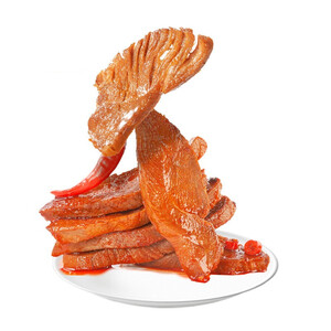 精选优质原料,肉质紧实个头均匀的鸭中翅,选用植物香料按照配方调配腌制肉类,经过烹饪卤制,制成甜辣爽口的周黑鸭。 上榜理由: