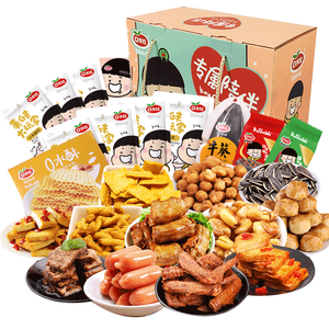肉类香辣馋人,坚果香脆过瘾,夜晚追剧加餐享受生活。满满一大箱零食,份量大品种丰盛,适合全家聚会聚餐后分享。 上榜理由: