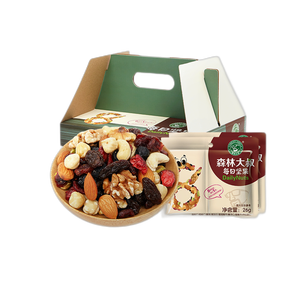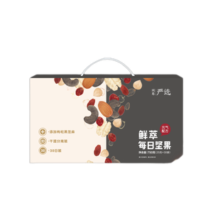 每一种果实都细挑细选,鲜香甜咸各种风味搭配恰到好处。贴心的外包装设计,瓦楞纸外盒坚挺结实,保护产品不会被挤压损坏。