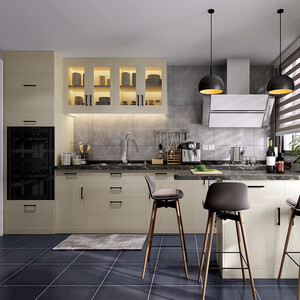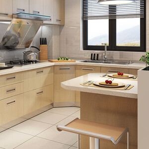 根据厨房户型图和客人需求设计,按需定制合你心意;选用环保材料确保健康安全,柜门采用进口百隆铰链,开合顺畅无噪音。 上榜理由: