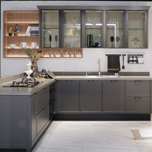 不锈钢门板材质,可以分门别类存放橱具,打造整洁卫生厨房环境。石英石台面,抗污防渗,一抹即净易清洁,久用弥新。 上榜理由: