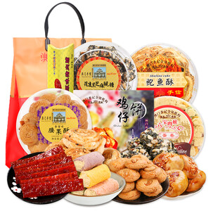 精选肉松蛋卷、猪肉脯、鲍鱼酥等多种小食搭配组合,具有甘香浓郁的口感。加上精美的纸带外包装设计,适合作为朋友的送礼优选。
