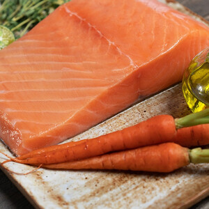 橘红色的新鲜质地,与白色脂肪纹理搭配,红白相间,色泽诱人。生鱼肉散发清香气味,没有鱼腥味,让人食欲倍增。 推荐商品