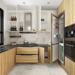 采用现代简约风格设计,空间布局合理,兼具功能性和美观度,缔造舒适厨房生活环境。优选E0级板材制作,绿色环保,使用更安心。 上榜理由: