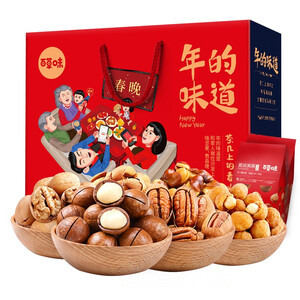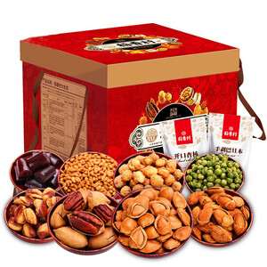 枣夹核桃、免洗红枣等新鲜坚果的搭配,不仅满足味蕾还为身体注入多样营养。复古华美的国风包装,吉祥寓意契合新年氛围。