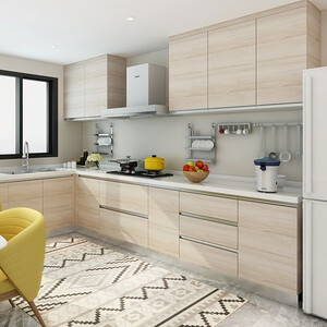 采用零甲醛的进口实木颗粒板材,绿色环保,呵护健康,可安心选择使用。采用铝合金踢脚线,不易老化,耐腐蚀,美观耐用。 上榜理由: