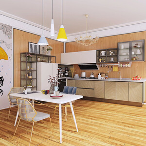 西式厨房简约装修风格,没有多余花哨修饰,轻松融入现代家居装饰。激光封边技术不易脱胶脱边,长用也能保持美观。 推荐商品