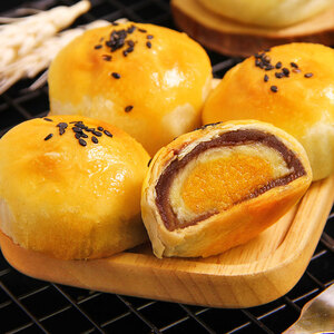 金黄酥脆的表皮包裹着整颗油润蛋黄,鲜香软糯,入口细滑,丰富舌尖体验。经典榴莲口味,馅料充足,散发浓浓的榴莲香。 上榜理由: